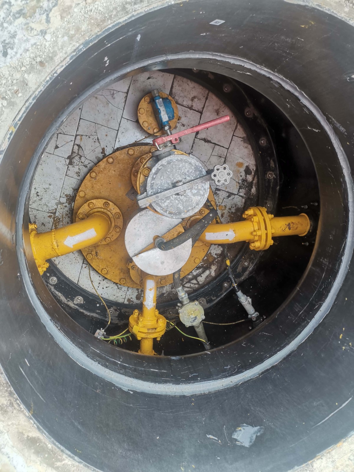 該加油站站房設在站區中部,罩棚布置在站房南側,在罩棚下設4臺加油機,分兩排平行布置,安裝在加油島上;靠外側加油機之間設置一臺尿素加注機,安裝在加油島上;罐區布置在站房東側,有4座雙層SF臥式油罐,埋地設在非行車道下,其中30m3汽油罐2座、30m3柴油罐2座;密閉卸油口設置在油罐南側,通氣管布置在油罐北側。根據GB50156-2021《汽車加油加氣加氫站技術標準》表3.0.9加油站的等級劃分,該站油罐總容積為30×2+30×2×1/2 =90m3(柴油折半計入),屬于三級加油站。