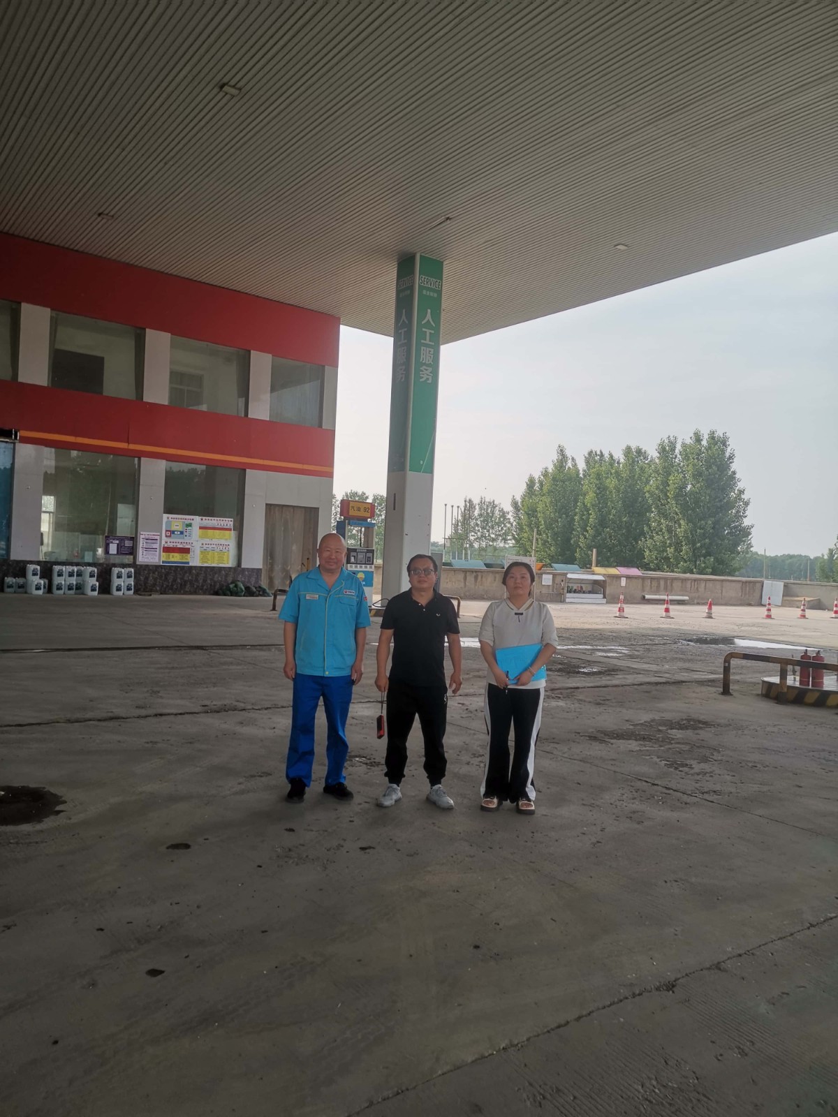 項(xiàng)目簡介 | 中國石油天然氣股份有限公司河南開封連霍高速開封東加油站位于開封市祥符區(qū)杜良鄉(xiāng)106國道與310高速口。自上次取得危險(xiǎn)化學(xué)品經(jīng)營許可證三年來,該加油站未發(fā)生過安全生產(chǎn)事故,站內(nèi)工藝、設(shè)備設(shè)施及周邊環(huán)境均未發(fā)生變化。 該加油站占地面積約12.1畝,現(xiàn)有員工4人,其中安全生產(chǎn)管理人員1人。站房設(shè)在站區(qū)西部,罩棚布置在站房東側(cè),在罩棚下設(shè)12臺(tái)加油機(jī)(其中4臺(tái)加油機(jī)已停用),分三排平行布置,安裝在加油島上;靠東側(cè)中間加油島上設(shè)一臺(tái)尿素加注機(jī),已停用;罐區(qū)設(shè)在站房北側(cè),有5座單層鋼制油罐,設(shè)防滲罐池,埋地設(shè)在非行車道下,其中50m3汽油罐1座、25m3汽油罐1座、50m3柴油罐3座;密閉卸油口設(shè)置在罐區(qū)東側(cè)。根據(jù)GB50156-2021《汽車加油加氣加氫站技術(shù)標(biāo)準(zhǔn)》表3.0.9加油站的等級劃分,該站油罐總?cè)莘e為50×1+25×1+50×3×1/2 =150m3(柴油折半計(jì)入),屬于二級加油站。該站采用潛泵式加油工藝,設(shè)有加油、卸油油氣回收系統(tǒng)。 加油站東側(cè)為興漢大道(主干路)、架空電力線(H=10m,有絕緣層),西側(cè)為農(nóng)田,南側(cè)為汽車修理部(散發(fā)火花地點(diǎn))、農(nóng)田,北側(cè)為魯青石化衛(wèi)生間(三類保護(hù)物)、魯青石化洗車機(jī)(三類保護(hù)物)、架空電力線(H=4m,有絕緣層)、農(nóng)田。站內(nèi)汽油、柴油工藝設(shè)備與站外建構(gòu)筑物的安全間距均符合GB50156-2021的要求。該加油站站內(nèi)設(shè)施的防火間距滿足要求。 | |||