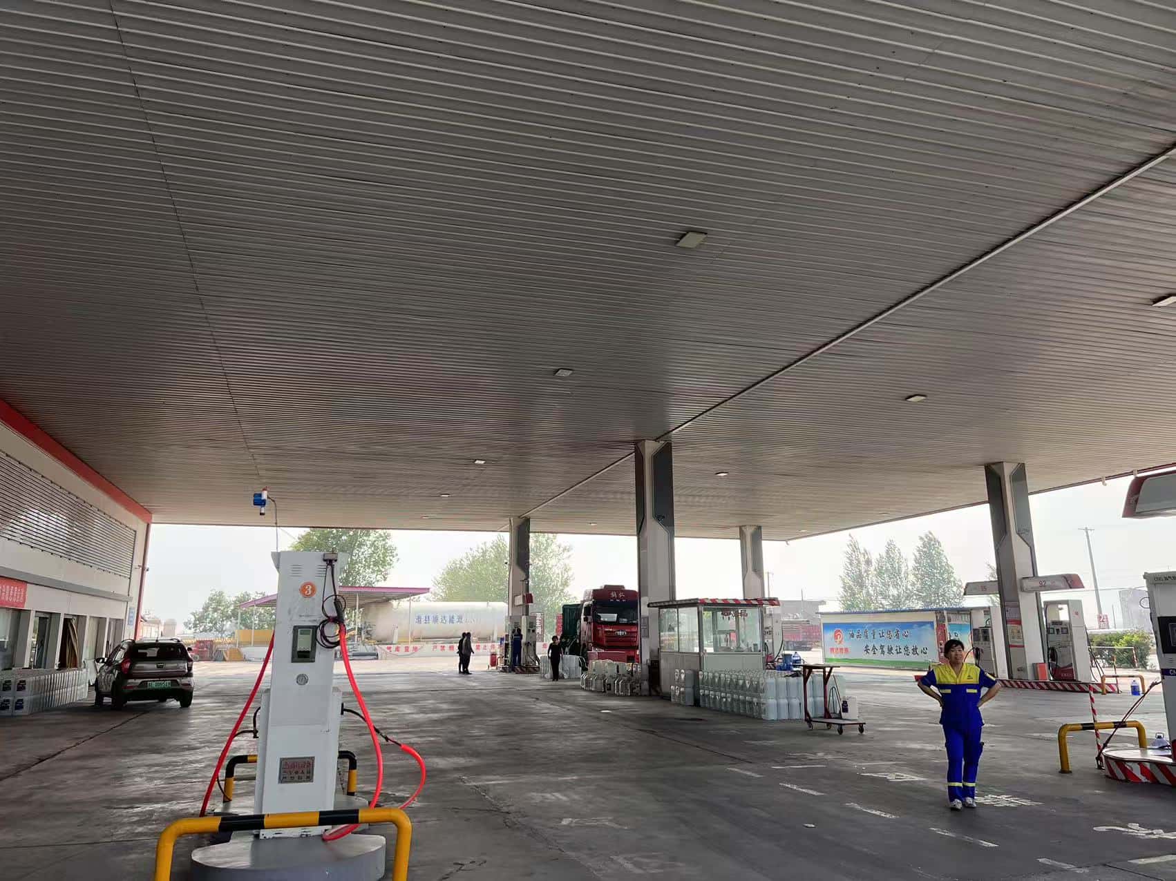 項目簡介 | 滑縣新集加油站成立于2010年09月26日,地址位于河南省安陽市滑縣王莊鎮(zhèn)新集村S101線東側,主要負責人:李連霞,加油站占地面積約5300m2,類型:個人獨資企業(yè),統(tǒng)一社會信用代碼:91410526MA40AEJX8D。《成品油零售經營批準證書》,經營范圍為:汽油、煤油、柴油;有效期:2022年03月15日至2027年03月15日。《危險化學品經營許可證》許可經營范圍:乙醇汽油、柴油,有效期:2022年11月28日-2025年11月27日。 該站為加油與LNG加氣和CNG加氣合建站,坐南朝北,東側為CNG儲氣瓶組、空地,西側為小路,小路西側為空地,南側為廢棄汽修廠,北側為LNG儲罐、S101道路。自2022年11月取證以來,周邊環(huán)境未發(fā)生變化。站內總平面布置變化如下;2024年12月在汽油加油機附近增設可燃氣體報警儀。站內其他建、構筑物未發(fā)生變化。 | |||