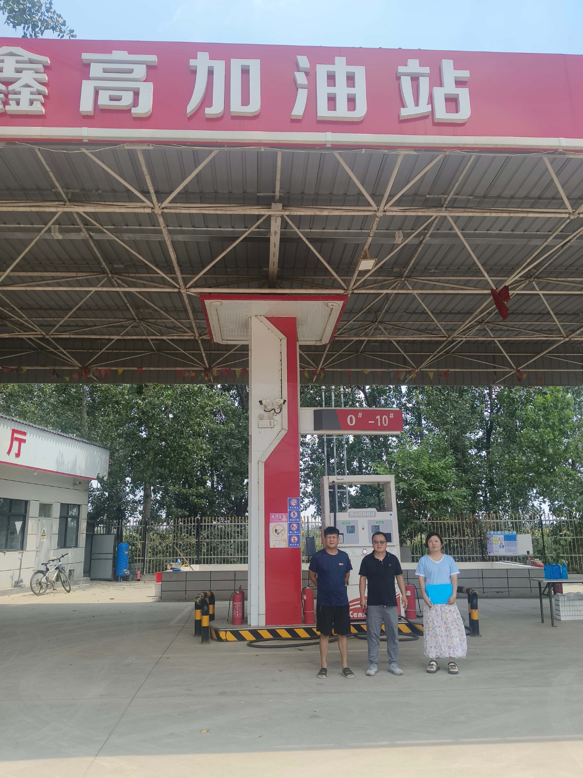 項(xiàng)目簡介 | 鹿邑縣鑫高加油站位于河南省周口市鹿邑縣辛集鎮(zhèn)大陳行政村尚屠莊自然村南100米辛集至高集鄉(xiāng)道東側(cè),《危險(xiǎn)化學(xué)品經(jīng)營許可證》(豫鹿危化經(jīng)字【2022】000134號)有效期限至2025年09月26日,許可范圍:乙醇汽油、柴油(閉杯閃點(diǎn)≤60℃)。 該加油站占地面積約為700m2,有員工2人,其中安全生產(chǎn)管理人員1人,無特種作業(yè)人員。加油站設(shè)有2臺加油機(jī),有臥式埋地儲油罐3座(SF雙層油罐),其中2座15m3乙醇汽油罐、1座20m3柴油罐(柴油折半計(jì)入),油罐總?cè)莘e為15×2+20×1/2 =40m3。根據(jù)GB50156-2021《汽車加油加氣加氫站技術(shù)標(biāo)準(zhǔn)》第3.0.9條對加油站的等級劃分,該加油站為三級加油站。該加油站加油采用自吸式加油工藝,汽油設(shè)備設(shè)置有加油和卸油油氣回收系統(tǒng)。 | |||