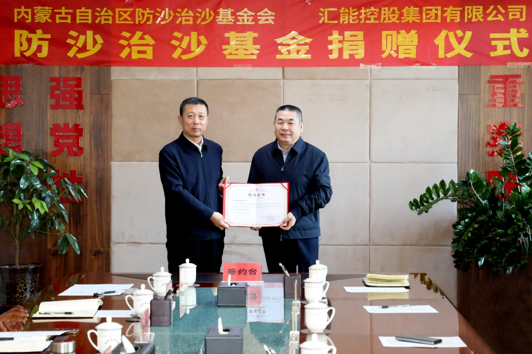 匯能控股集團向內蒙古自治區防沙治沙基金會捐贈儀式在呼和浩特市舉行